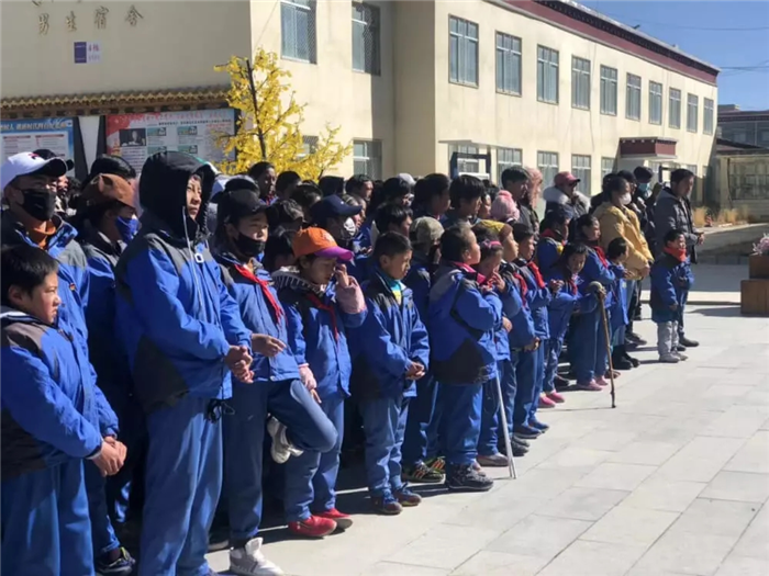 11月1日上午,西藏阜康天使基金會吉拉女士受西藏阜康醫(yī)療股份有限公司黨委書記、阜康天使基金會會長王斌先生,西藏阜康醫(yī)療股份有限公司總經(jīng)理、阜康天使基金會秘書長劉瀟瀟女士委托與西藏阜康醫(yī)院義診隊一起,攜價值一萬五千元的藥品和兩萬元的物資來到那曲市特殊教育學(xué)校,為這里的孩子們帶來了文化體育學(xué)習(xí)用品及藥品等物資。在特校校長次仁拉姆的組織下,特校師生列隊歡迎我們的到來,還精心準(zhǔn)備了錦旗和潔白的哈達(dá)。
