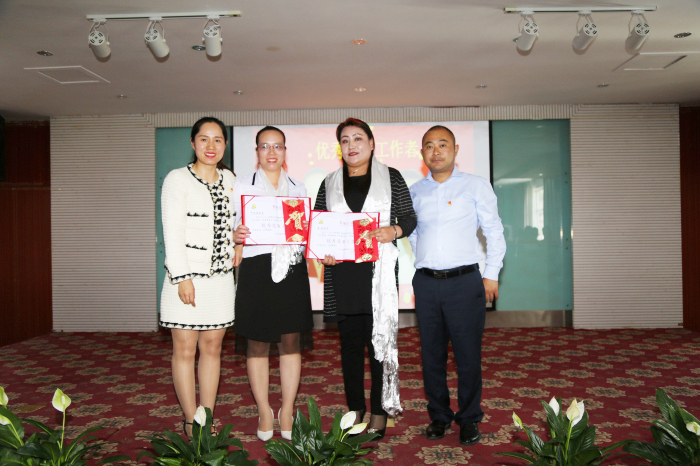 牛亞青、張政、雷羊州、劉秀等同志獲得"優(yōu)秀共產(chǎn)黨員”稱號,何文秀同志、索珍同志獲得"優(yōu)秀黨務(wù)工作者”稱號,義診組黨小組獲得"優(yōu)秀黨小組”榮譽,阜康"老兵之家”支部委員會、中共西藏阜康藥店聯(lián)合支部委員會獲得"先進基層黨組織”榮譽。陳彬、何文秀、劉秀、李映、李燕科、江潤霞、孫自豪等7位同志獲得阜康雪域天使志愿者服務(wù)隊 "志愿者之星”。區(qū)黨委組織部四處和公司黨委領(lǐng)導(dǎo)為獲獎人員頒獎。