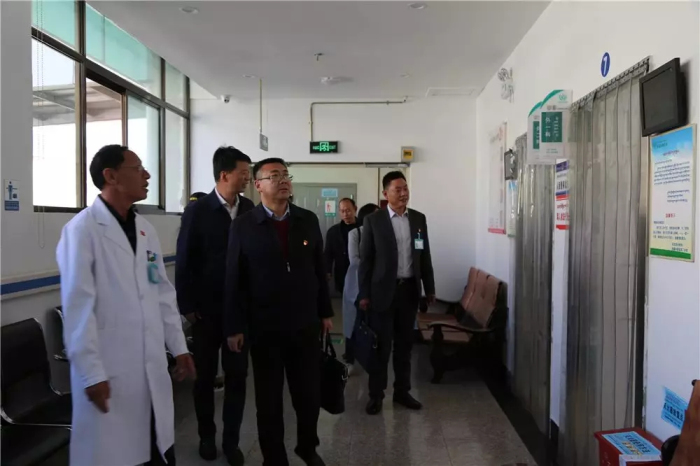 宋留柱書記一行在王斌等各位院領(lǐng)導(dǎo)的陪同下參觀了阜康醫(yī)院放射科、門急診科、標準化病房、院史館、黨員活動室等。