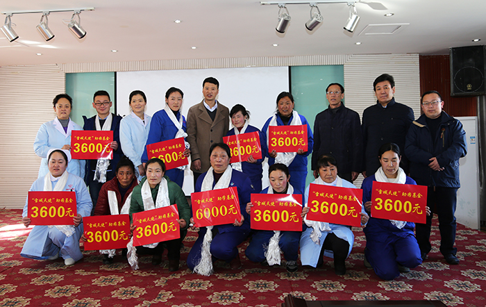 王董事長表示,今天到此的都是阜康最基層、最一線的人員,是她們默默無聞工作,創(chuàng)造了優(yōu)美、整潔的就醫(yī)環(huán)境,使來阜康的每一個人,對阜康有一個干凈整潔的第一感受。所以,我要感謝他們,感謝她們的辛勤勞動換來了阜康的美好環(huán)境。說實話,之前我曾多次考慮過為了阜康的發(fā)展,是不是將阜康的保潔工作外包給更專業(yè)的人員,用更專業(yè)、更省錢的方式來管理。但是,想到她們這群可愛的藏族姑娘,我又一次次的放棄了這個念頭。因為她們也是我們阜康這個大家庭的一員。我們爭取努力,在2020年,讓她們和我們阜康的每一個人一起奔小康,借用習大大的一句話"一個都不能少”。最后,在新年來臨之際,祝愿阜康的每一位員工都不再需要阜康"雪域天使基金會”的幫助!