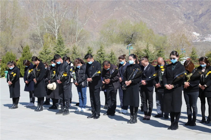 唱過(guò)國(guó)歌之后,全體人員手執(zhí)鮮花,俯首默哀,在內(nèi)心深切緬懷為西藏解放、為西藏繁榮富強(qiáng)作出奉獻(xiàn)和犧牲的英雄先烈。