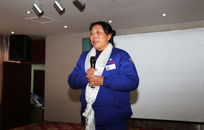 受助員工代表昂旺桑姆激動地表達了對公司對王總的感謝,她表示,自己家里的狀況對很多親戚朋友來說可能是個拖累,很多親戚朋友都因此疏遠自己。但在阜康,因為王總及其夫人劉瀟瀟創(chuàng)辦的雪域天使基金會的幫助,讓自己的女兒能夠順利上大學(xué)。是阜康,是王總給自己家?guī)砹艘环菪碌南M?/span>